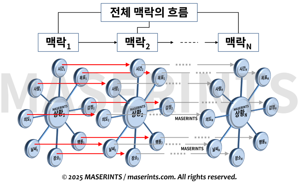 여기서 중요한 것은 “순간순간”이란 표현인데, 아주 짧은 순간에 가지는 나의 정신 상태를 포함한다고 볼 수 있다. 또한 MASERINTS에서는 내가 남긴 전체 맥락적인 의미를 포함할 수도 있다. 즉, 그림과 같이 상황이 가지고 있는 맥락과 그런 맥락이 현재까지 가지로 있는 역사적인 정보를 포함하고 있다는 것이다.