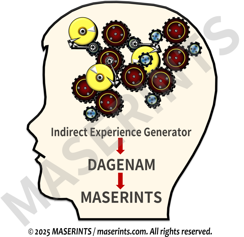 DAGENAM에 대한 처음 생각은 사람의 감각 정보, 즉 시각, 청각, 후각, 미각, 촉각, 이 다섯 가지 감각을 통한 정보나 자료로 만들어 각 감각 정보를 분석하고 분리해서, 서로 다른 감각 정보 자료 그룹에서 하나 이상의 구성원들을 선택해서 새로운 경험 자료를 계속 만들어 가는 ‘간접경험생성기’ 역할을 하는 것이었다. 이 ‘간접경험생성기’에 의해 여섯 번째 감각에 대한 실체를 보고자 했던 것이다. 그래서 이러한 아이디어만으로는 새로운 디지털 세상에 필요한 체계라고 생각할 수 없었던 것이다.