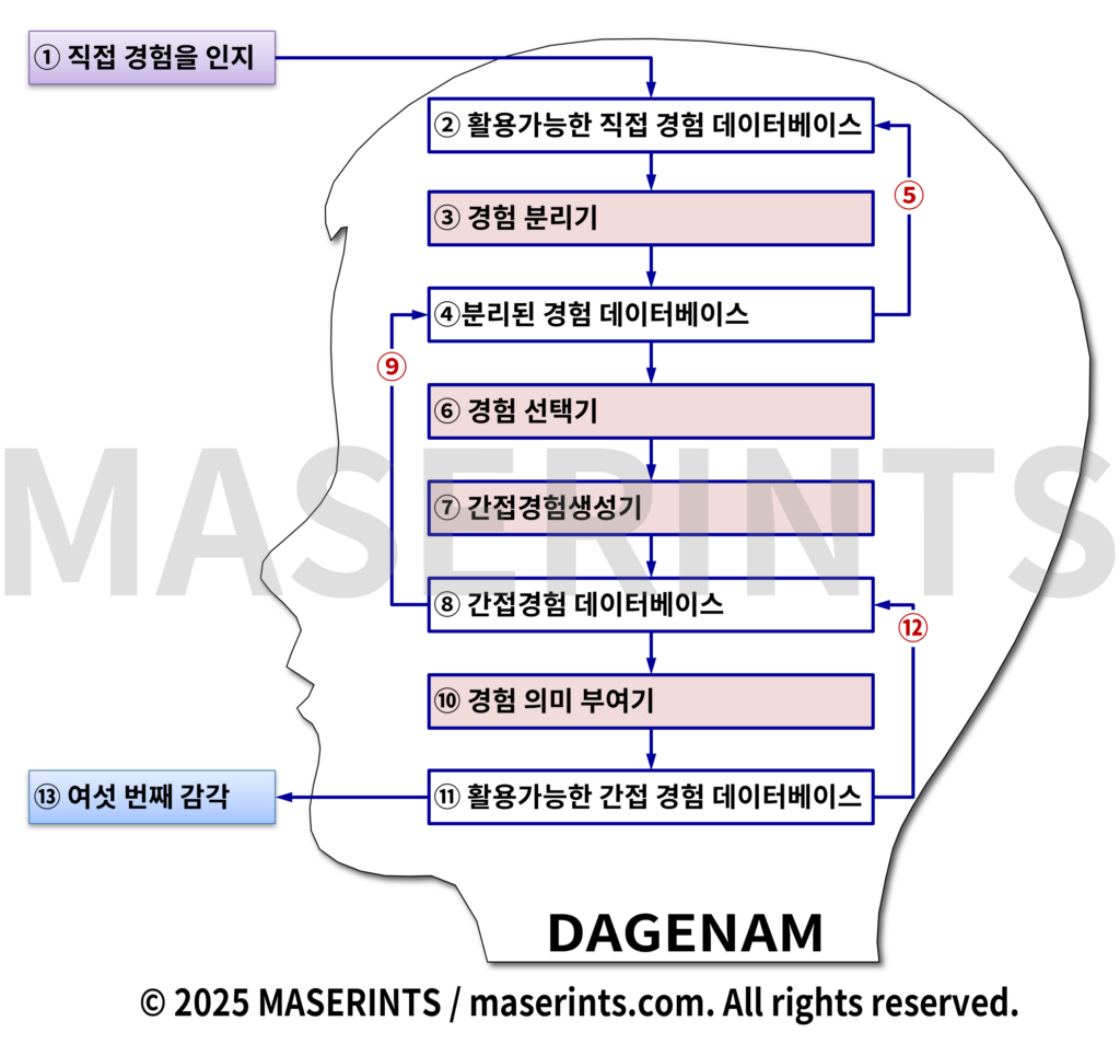 ⑬ ‘활용가능한 간접경험 데이터베이스’에 있는 의미가 부여된 ‘간접경험’은 필요에 따라 ‘여섯 번째 감각’에서 나온 경험으로 출력하게 된다.