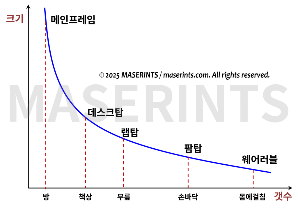 이렇게 방에만 있던 커다란 컴퓨터가 사람들의 책상 위로, 그리고 사람들의 무릎 위로, 그리고 손바닥 안에서 사용될 수 있는 컴퓨터로 그것이 있는 위치가 바뀌면서 그 수도 점점 늘어나게 되었다. 방의 수보다는 책상의 수기 많았을 것이고, 책상의 수보다는 사람의 무릎 수가 많았을 것이다. 물론 그 수가 많아졌다는 것도 의미가 있겠지만, 또 하나의 중요한 의미는 그만큼 컴퓨터의 사용이 많아졌다는 것과 한층 사람들과 더 가까워졌다는 것이다. 이러한 흐름의 의미는 Ubicomp을 이해하는데 중요한 역할을 한다. 이제는 컴퓨터가 특별한 장소에 가야만 사용할 수 있다는 개념은 많이 없어지게 되었고, 컴퓨터라는 것이 하루 생활에 없어서는 안될 정도로 영향을 받는 사람들이 많아지게 되었다. 하지만, 그렇게 컴퓨터가 많아져도 컴퓨터의 사용에 있어 편한 도구로써 사용되기 보다는 복잡한 기계 디바이스처럼 이것 저것을 알아야 하니 아직도 두려움을 가지는 것이 무리는 아닌 듯하다.